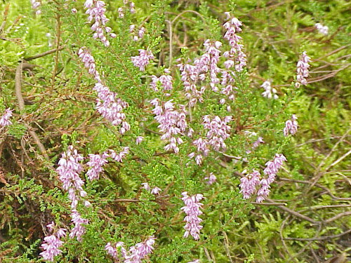 (Calluna vulgaris), Mountain Crowberry (Empetrum hermaphroditum) with its black berries bearing a similarity to blueberries, and finally four very similar, small,